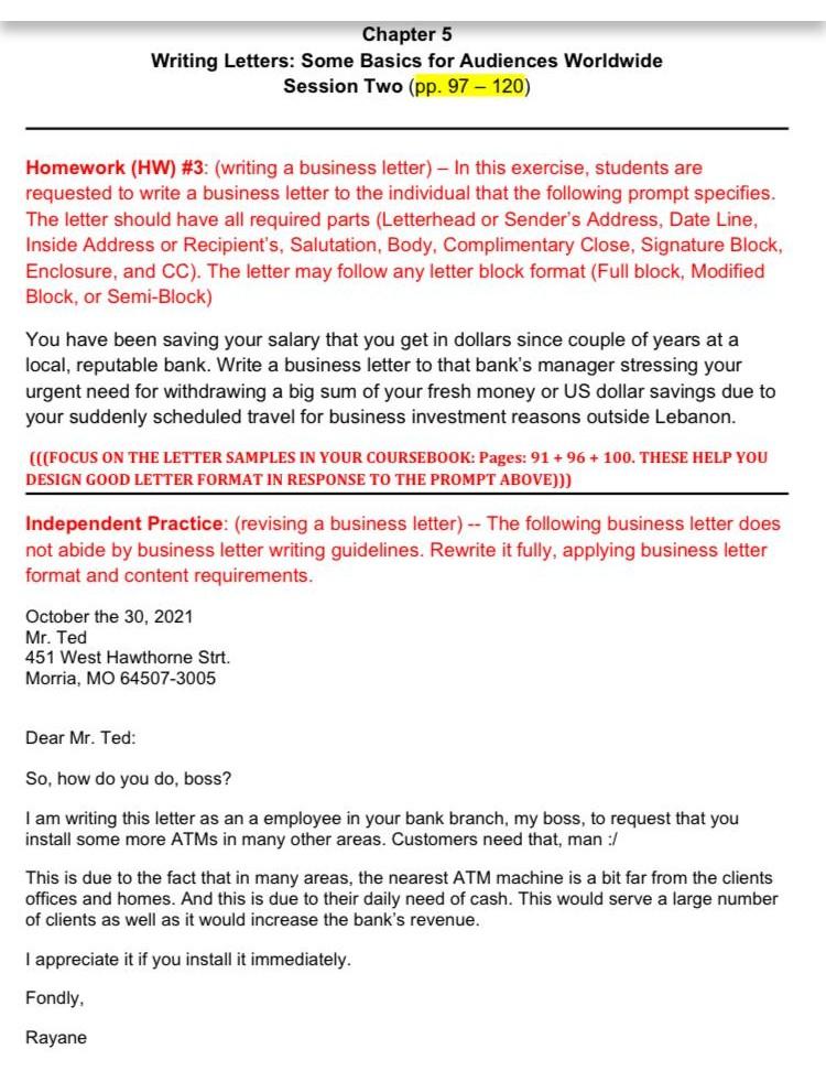 Solved Chapter 5 Writing Letters Some Basics For Audienc Chegg Com
