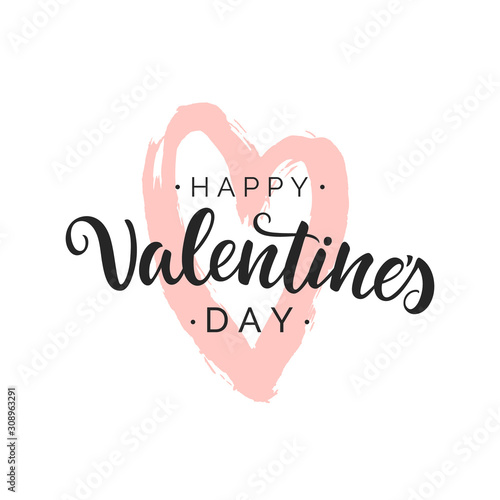 Happy Valentine S Day Hand Drawn Brush Lettering Script Calligraphy Isolated On White Background Perfect For Holiday Design Vector Illustration Stock Vector Adobe Stock