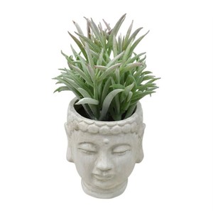 Buddha Pot W Artificial Succulent Plant Zen Garden Monk White Pot Ebay