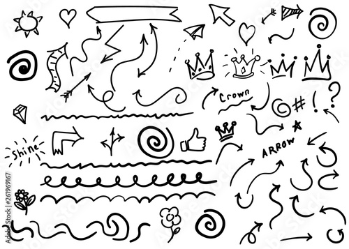 Swishes Swoops Emphasis Doodles Highlight Text Elements Calligraphy Swirl Tail Flower Heart Graffiti Crown Doodle Handdrawn Style Stock Vector Adobe Stock